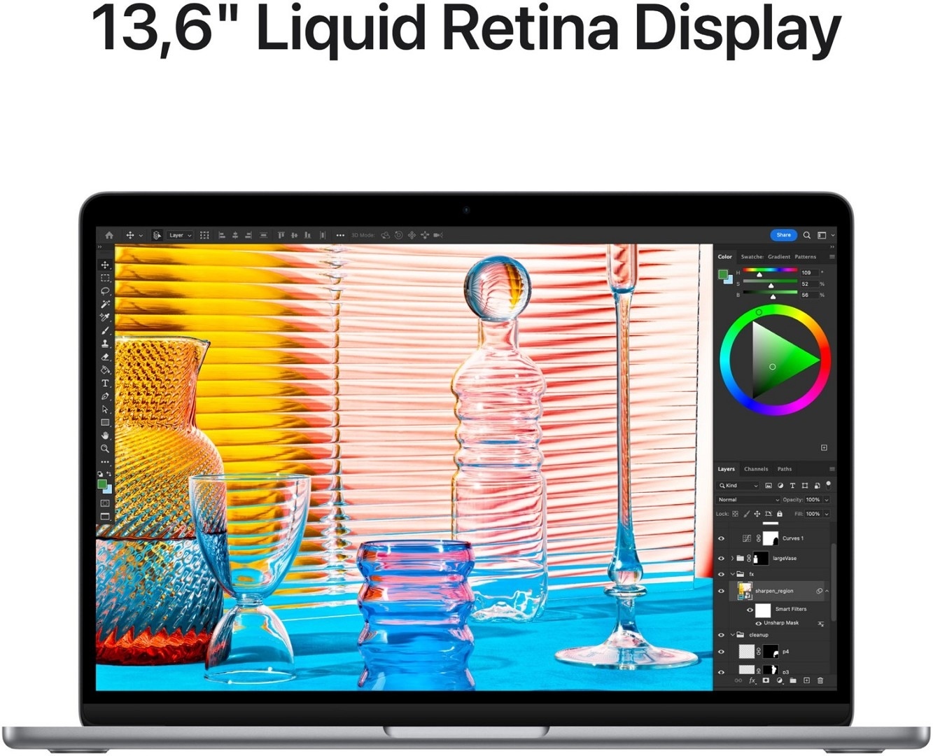 - 13,6" Liquid Retina Display mit 500 Nits Helligkeit und großem P3 Farbraum für brillante Bilder und unglaubliche Details³, 1080p FaceTime HD Kamera mit doppelt so hoher Auflösung und besserer Performance bei wenig Licht