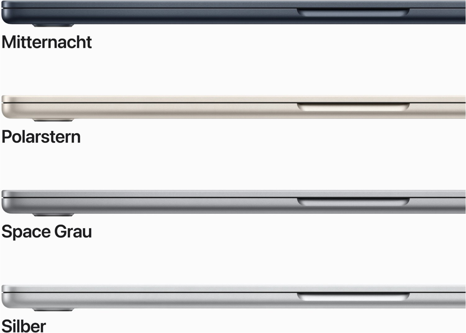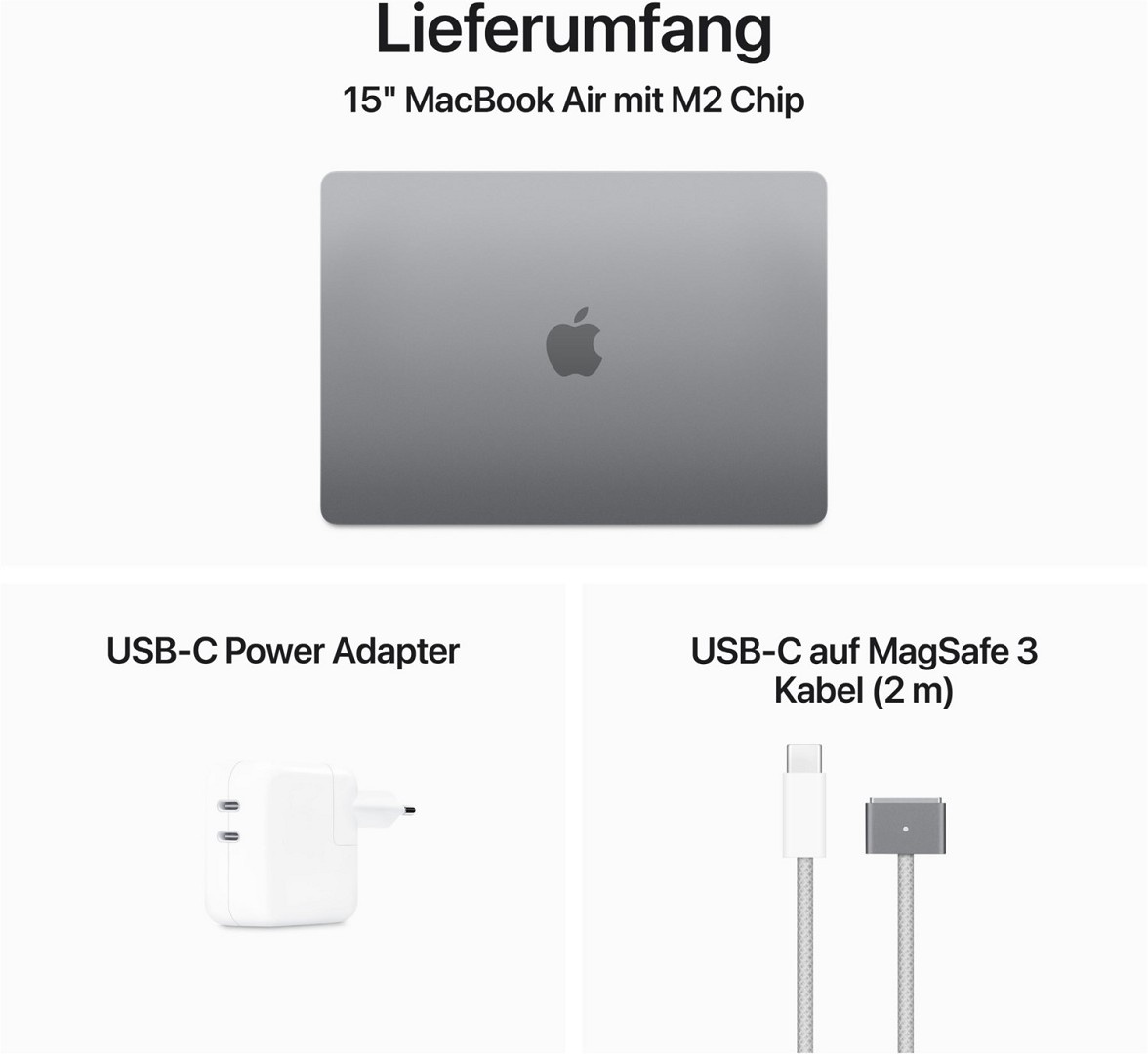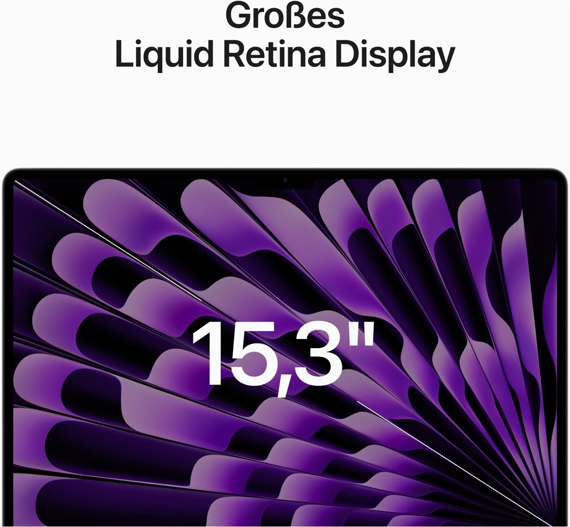 ³ Das Display des 15" MacBook Air hat oben gerundete Ecken. Als Standard-Rechteck gemessen hat das Display eine Diagonale von 15,3" (38,91 cm). Der tatsächlich sichtbare Displaybereich ist kleiner.