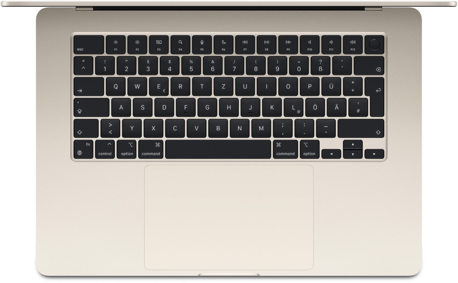 ² Das Display des 15" MacBook Air hat oben gerundete Ecken. Als Standard-Rechteck gemessen hat das Display eine Diagonale von 15,3" (38,91 cm). Der tatsächlich sichtbare Displaybereich ist kleiner.
