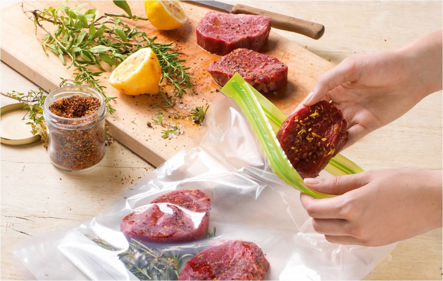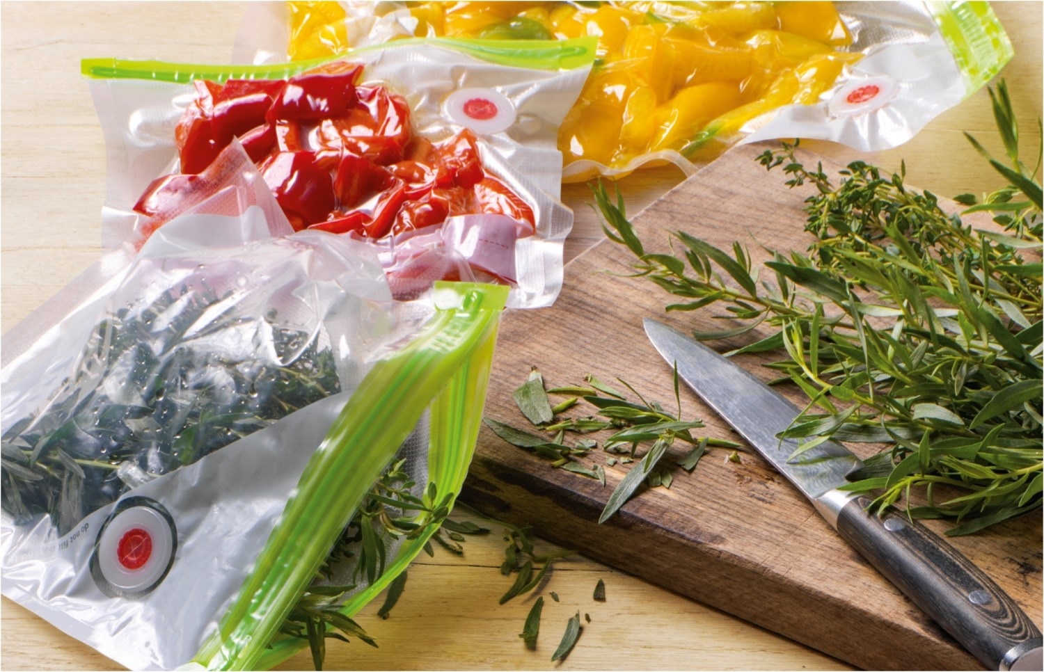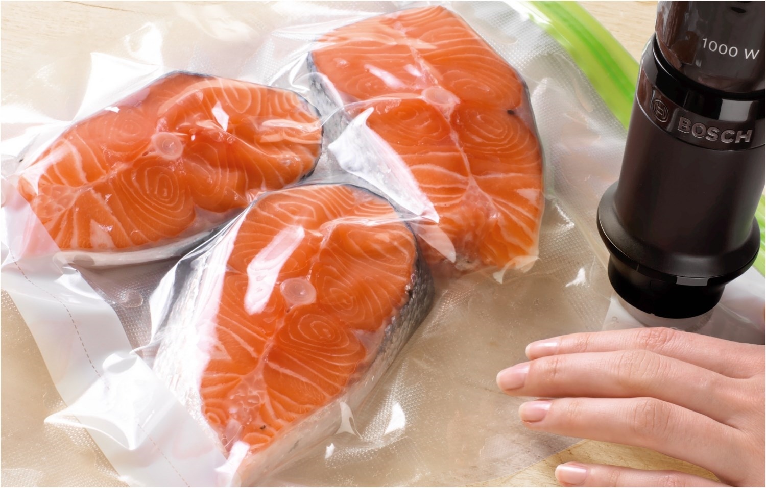 - Sous-vide: Vakuum-Frischhaltebeutel zum Vakuumgaren von Fleisch, Fisch oder Gemüse geeignet.