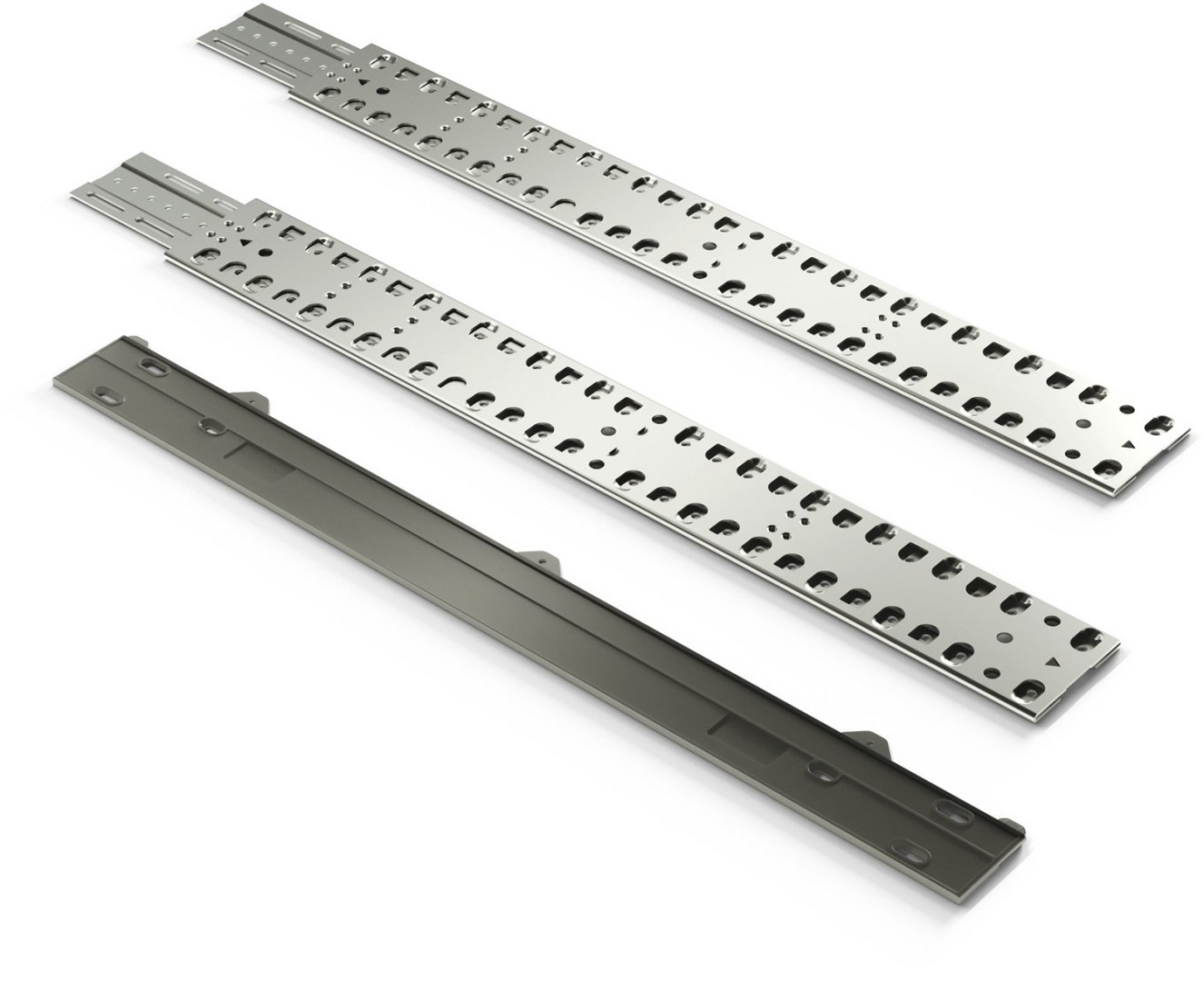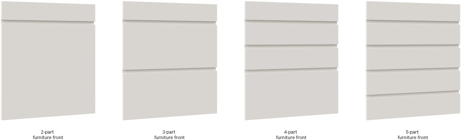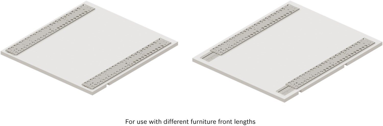 - Zweiteilige Metallschienen aus verzinktem Stahl, für die Montage von mehrteiligen Möbelfronten an vollintegrierte Geschirrspüler