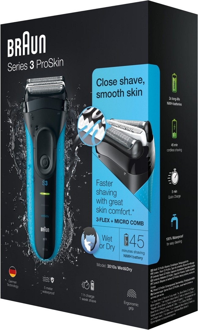 - Inhalt: Braun Series 3 ProSkin Rasierer, Schutzkappe, Reinigungsbürste, Netzteil mit automatischer Netzspannungsanpassung an 100 V bis 240 V