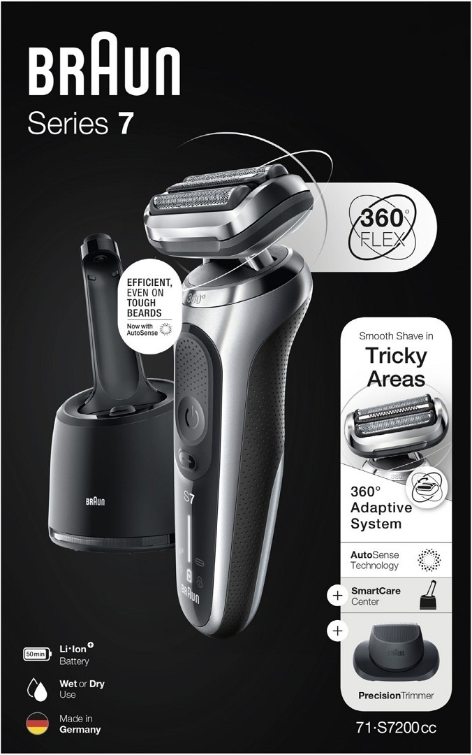 - Auch bei dichten Bärten effektiv: Die AutoSense-Technologie erkennt die Bartdichte, passt die Leistung entsprechend an und erfasst und schneidet so mehr Haare bei jeder Rasur