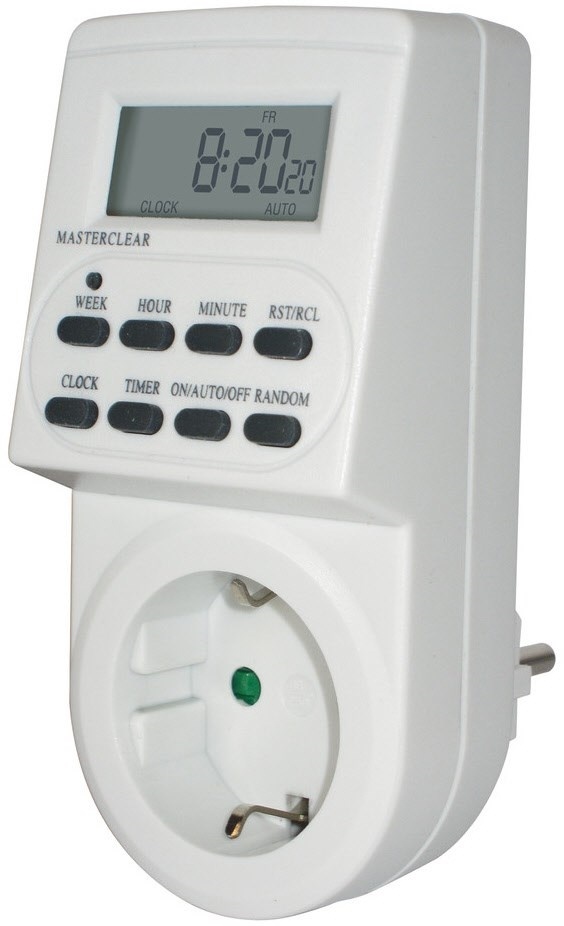 - Zeitschaltuhr ist mit 10 Ein-/Ausschaltzeiten programmierbar