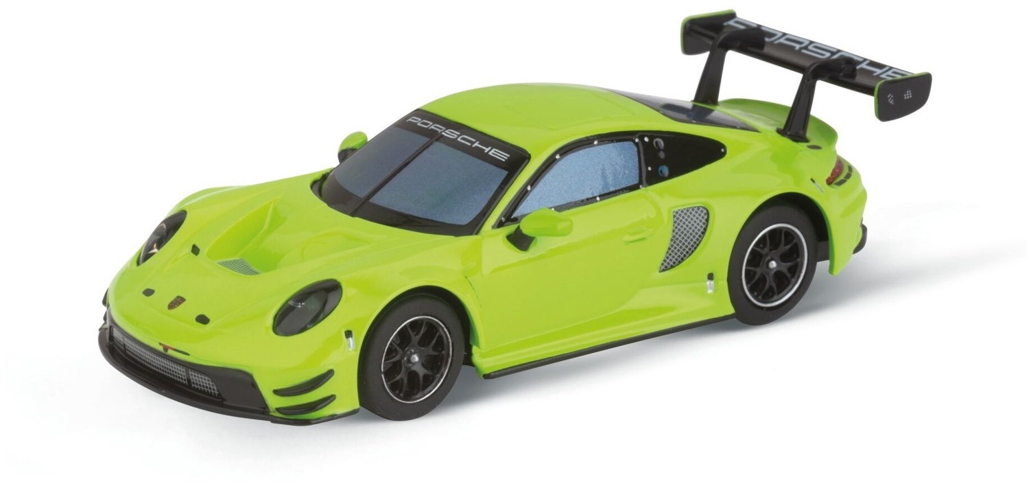 Der Carrera Hybrid - Porsche 911 GT3 R "Acid Green" repräsentiert im Maßstab 1:50 die legendäre Marke Porsche. Dieses grüne Modell ist nicht nur ein optisches Highlight, sondern besticht auch durch seine real getreuen Fahreigenschaften. Mit seiner auf den Maßstab abgestimmten Geschwindigkeit und dem authentischen Kurvenverhalten bietet der "Acid Green" ein realistisches Renngefühl. Der Akku hält bei einer Ladezeit von nur 20 Minuten rund 30 Minuten lang, sodass du ausgiebig Rennspaß genießen kannst. Der Porsche 911 GT3 R "Acid Green" verbindet Tradition und Innovation und ist damit ein Muss für jeden Rennsport-Enthusiasten und Porsche-Liebhaber.
