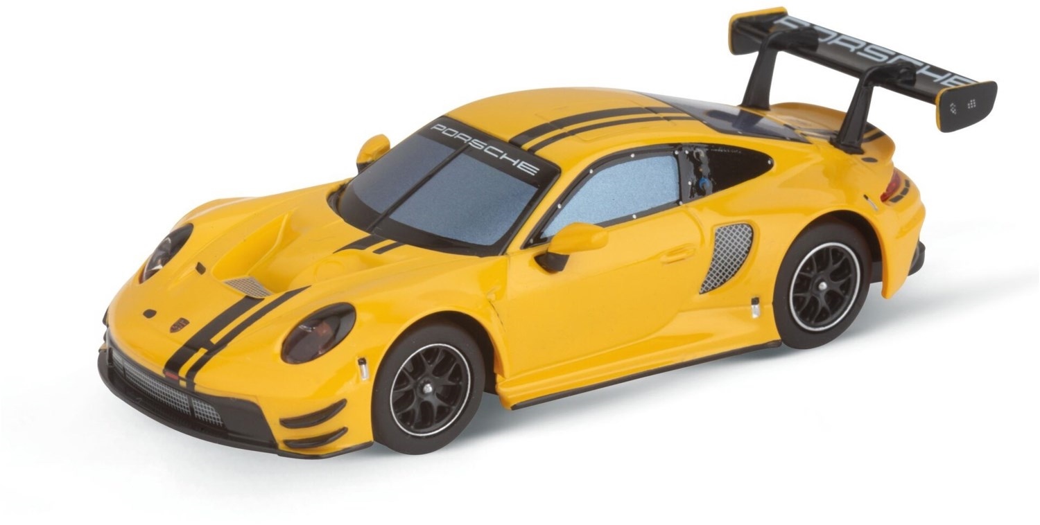 Im Carrera Hybrid - Speedway to Hell Set sticht der Porsche 911 GT3 R "Speed Yellow" mit seinem leuchtendem Gelb sofort ins Auge. Als Modell im Maßstab 1:50 verkörpert der "Speed Yellow" die leistungsstarke Dynamik der Porsche-Marke. Dieses Fahrzeug bietet eine realistische Geschwindigkeit und ein authentisches Fahrverhalten angepasst an den Maßstab. Mit einer schnellen Ladezeit von nur 20 Minuten und einer Akkulaufzeit von ca. 30 Minuten verspricht der "Speed Yellow" langanhaltenden Rennspaß. Dieses Modell ist eine Hommage an die technologische Innovation und das zeitlose Design von Porsche, ideal für Motorsportfans, die nach spannendem und realistischem Rennspaß suchen.