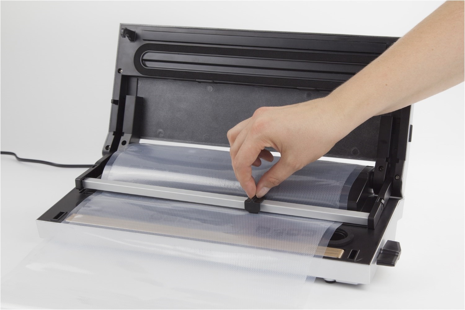 - Regulierbare Schweißzeit: ideal für feuchte oder marinierte Lebensmittel, Praktischer Rollen-Cutter