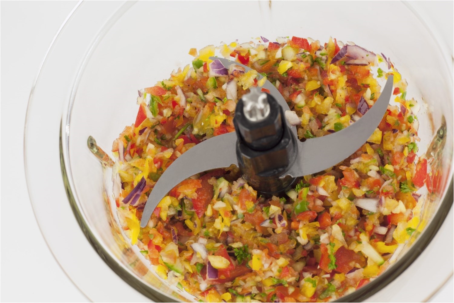 - Vielseitig einsetzbar: Zerschneidet und zerkleinert Obst, Gemüse, Zwiebeln, Knoblauch, Fleisch, Fisch, Nüsse etc. innerhalb weniger Sekunden