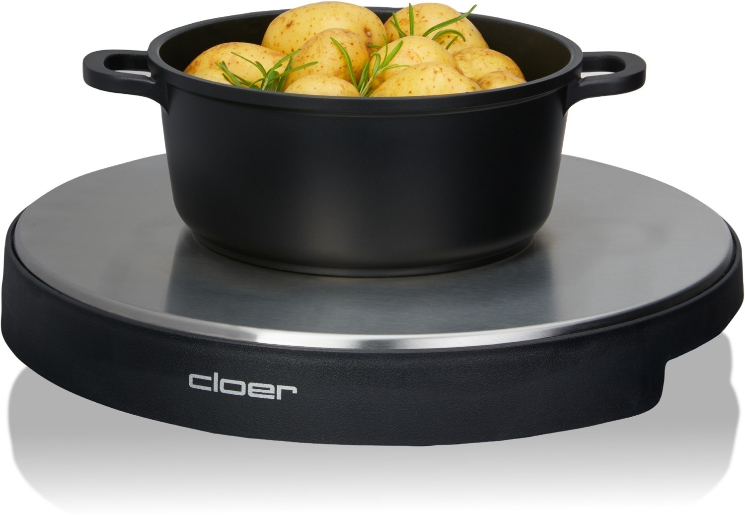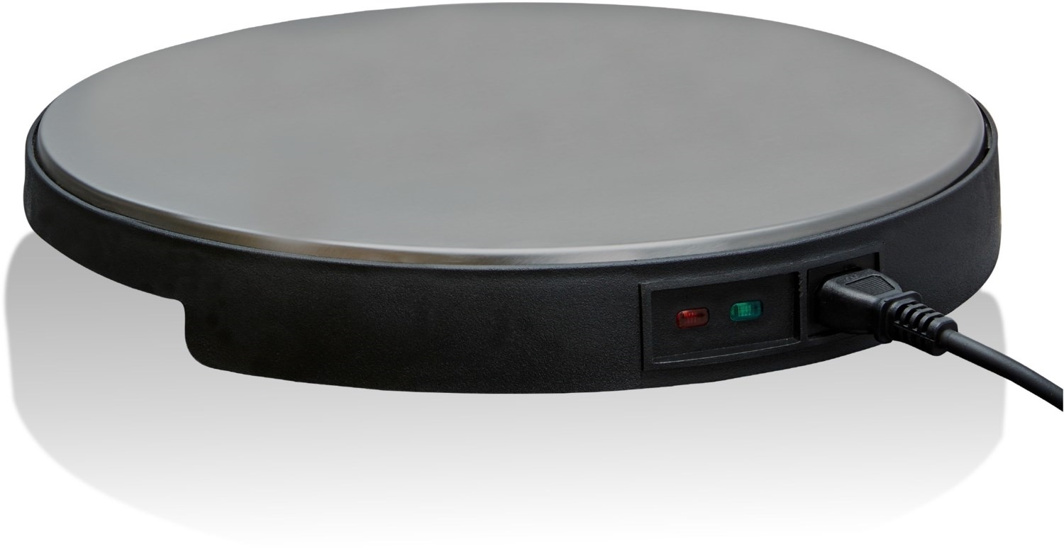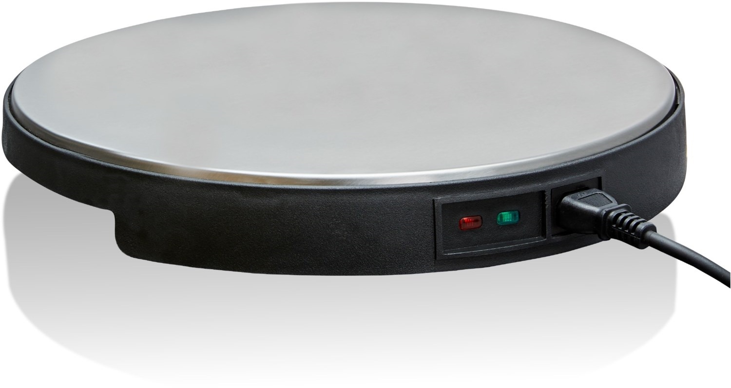 - Gebürstete Edelstahlplatte 35 cm Ø, Warmhalteplatte 360° drehbar