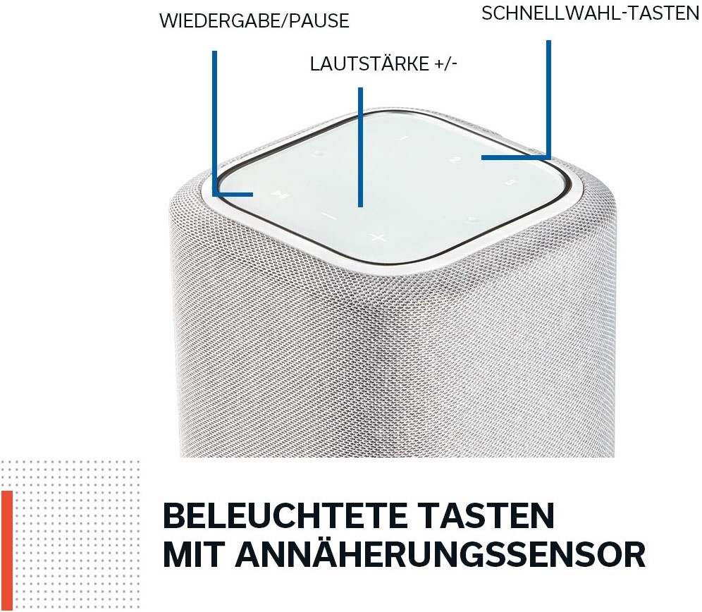 Das neue High-End-Interface mit Annäherungssensor wird aktiviert, noch bevor Ihre Hand die Oberfläche berührt. Dies bewirkt, dass die Tasten des Denon Home 150 für eine problemlose Steuerung beleuchtet werden.
