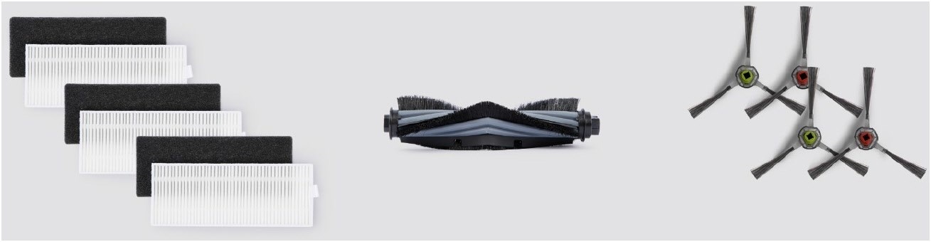 - Ersatzset für U2 Serie (Inhalt: 1x Hauptbürste, 4x Seitenbürsten , 3x Feinstaubfilter)