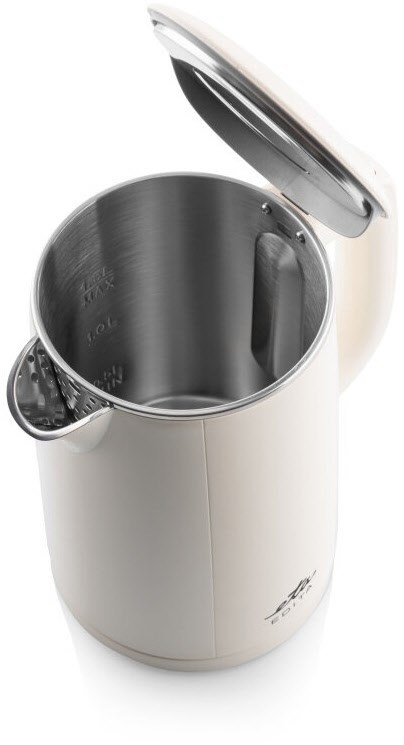 - Leichte Oberflächenpflege dank abgerundeter und leicht zugänglicher Teile des Wasserkochers