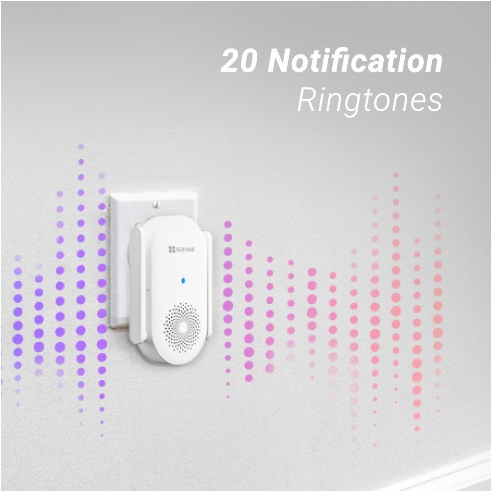 Optimieren Sie Ihre EZVIZ-Türklingel mit dem sorgfältig durchdachten Innengong. Die CH1 fügt sich stilvoll in jeden Raum in Ihrem Haus ein. Individualisieren Sie den CH1 mit den individuellen Klangoptionen, die am besten zu Ihrer Stimmung passen.