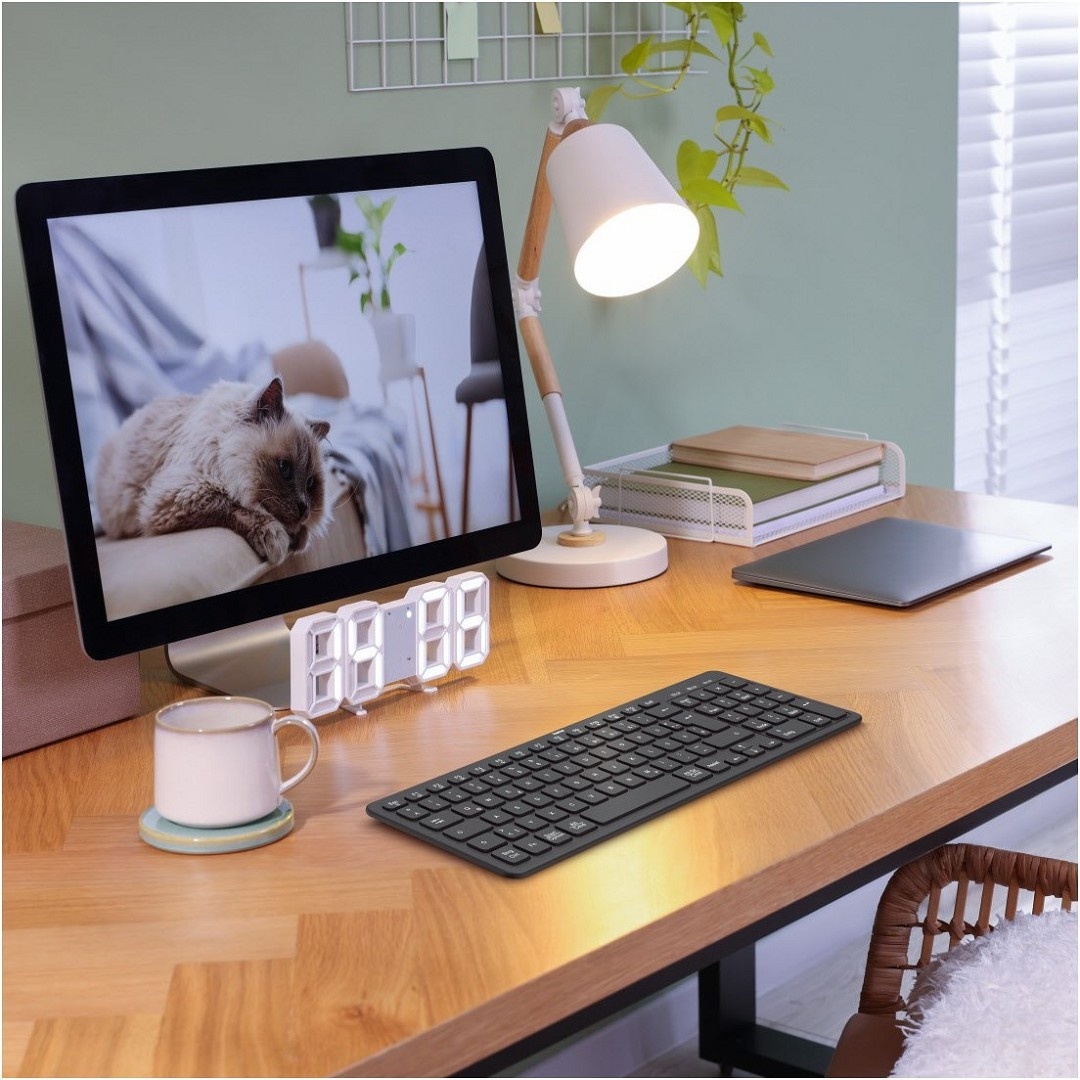 - Mehrere Geräte gleichzeitig verbinden via Multi-Device: kompakte Office-Tastatur zur kabellosen Steuerung von Computer, Smartphone und Tablet über Bluetooth oder Funk in Verbindung mit dem USB-A-Empfänger