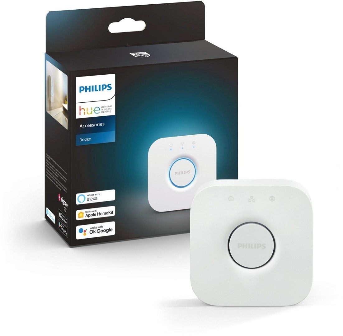 - Schliesse einfach die Hue Bridge an und steuere mit der Hue App automatische Funktionen, Timer, eigene Lichtszenarien und mehr