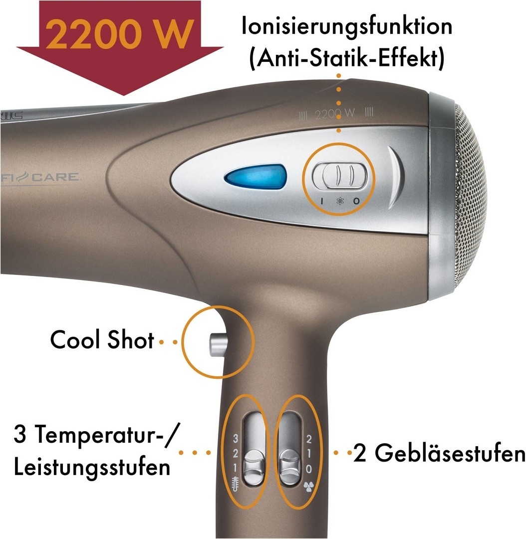 - Profi-Haartrockner mit leistungsstarken 2200 Watt