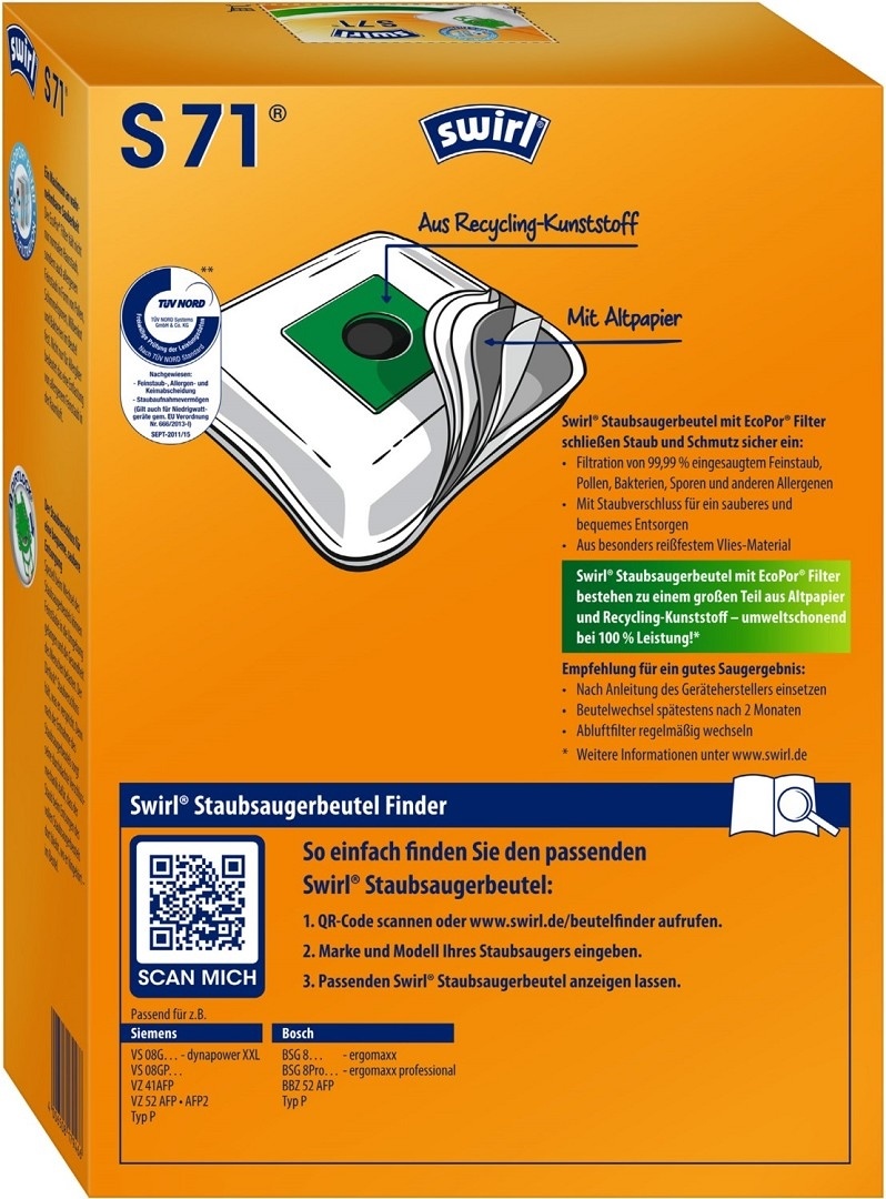 Den passenden Swirl® Staubsaugerbeutel finden ist ganz einfach.